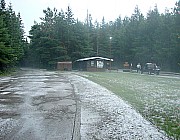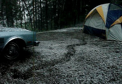huddled inside the Two Rivers Store, watching with amazement as the hail and heavy rain came down. For